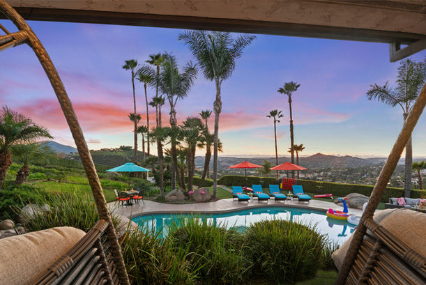 Welcome to an unforgettable hillside estate in El Cajon, designed to elevate your wedding, celebration, or private getaway. This stunning property blends indoor luxury with outdoor charm, offering tiered grounds that include a sparkling saltwater pool, relaxing spa, shaded veranda, al fresco dining, and a pet-friendly enclosure—perfect for your four-legged guests.